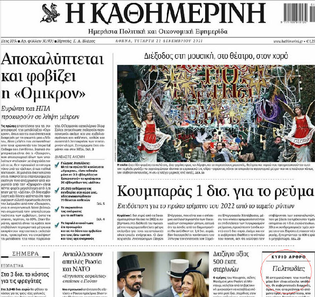 Μία από τις, όχι σπάνιες, βολές του πρωτοσέλιδου άρθρου της Καθημερινής κατά κυβέρνησης και στελεχών της –τα οποία ποτέ, ή σχεδόν ποτέ, κατονομάζει– υπάρχει στην έκδοση της Τετάρτης.